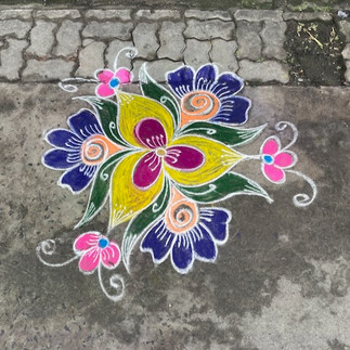 We're located quite close to land's edge in Pondicherry, in an area called Vaithikuppam. Vaithikuppam is predominantly a fishing community, with boats setting out from here almost every morning or night, except when there's a cyclone on the horizon, or during the mandatory annual fishing break. Vaithikuppam also hosts the Masi Magam festival, with devotees coming from around the Pondicherry territory and Tamil Nadu. But it's during Pongal when the streets turn their most colourful. All the small fishing homes will have a beautiful kolam (rangoli) outside, painstakingly drawn, for a week leading up to the festival, culminating in the final festive kolam on Pongal festival days. We took a walk around Vaithikuppam and photographed some of these beautiful kolams. Here are just a few of the photos we took.